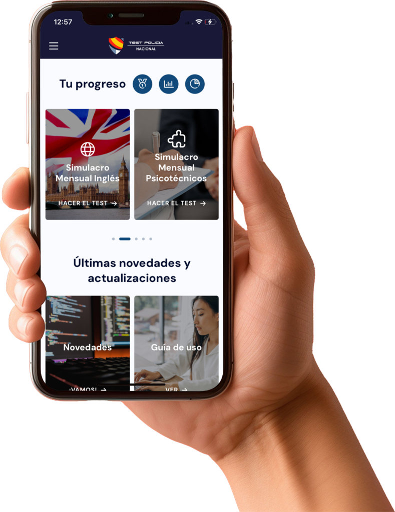 Nuestra plataforma de test policía nacional está 100% creada específicamente para la oposición de Policía Nacional. Con todas las herramientas que necesitas para aprobar.